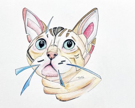 These handsome cats have been made by hand: first drawn by hand, then colored with watercolor pencils. Exactly how Walt Disney Studios used to draw their first movies.